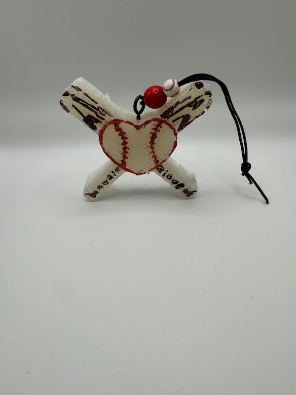 • Dual bat silhouette with a miniature baseball bead accent